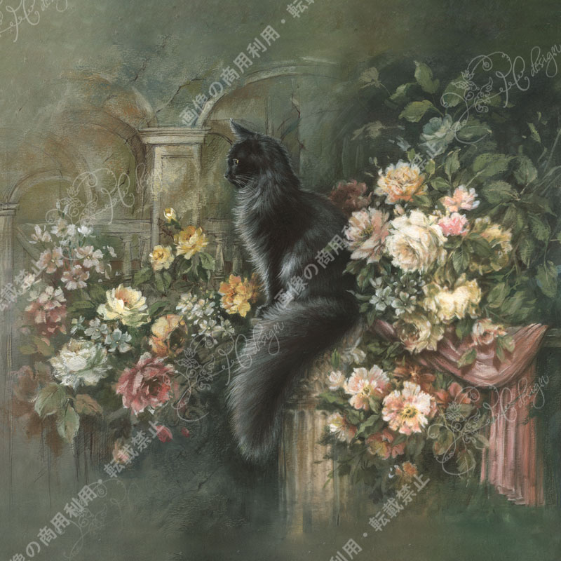 221 Bouquet rose et chat noir -ピンクブーケと黒猫 Roxanne(ロクサーヌ)